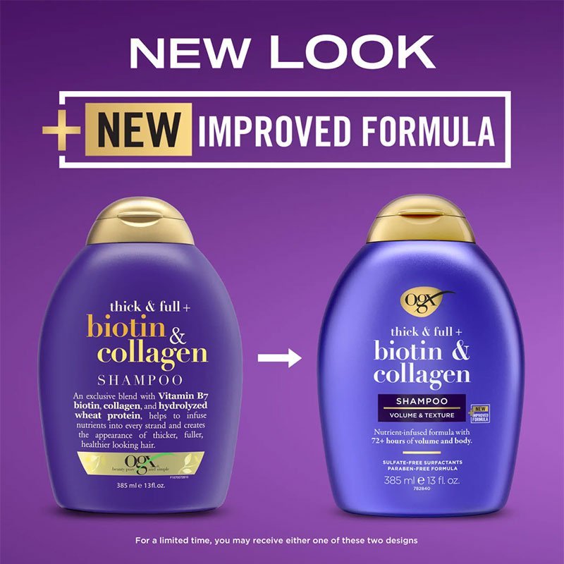OGX Thick & Full+ Biotin & Collagen is a volumizing blend, helping to thicken and texturize fine hair. Help infuse nutrients into every strand and create the appearance of thicker, fuller hair with added volume.